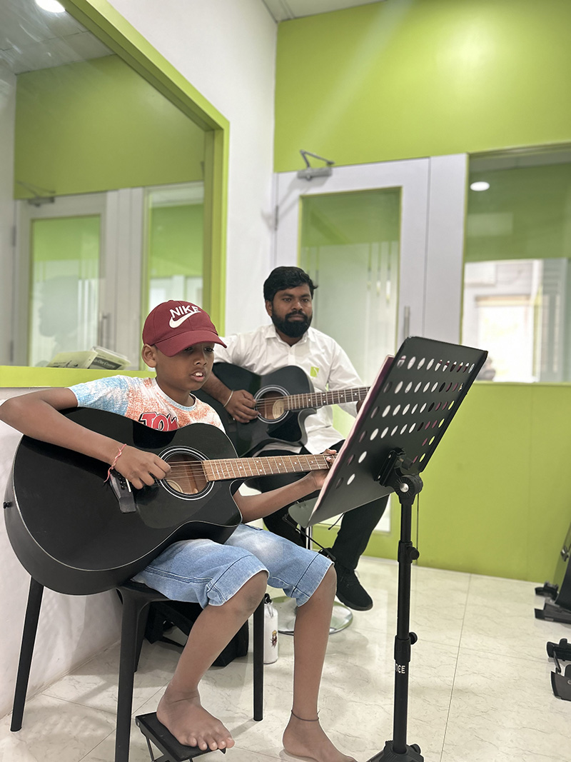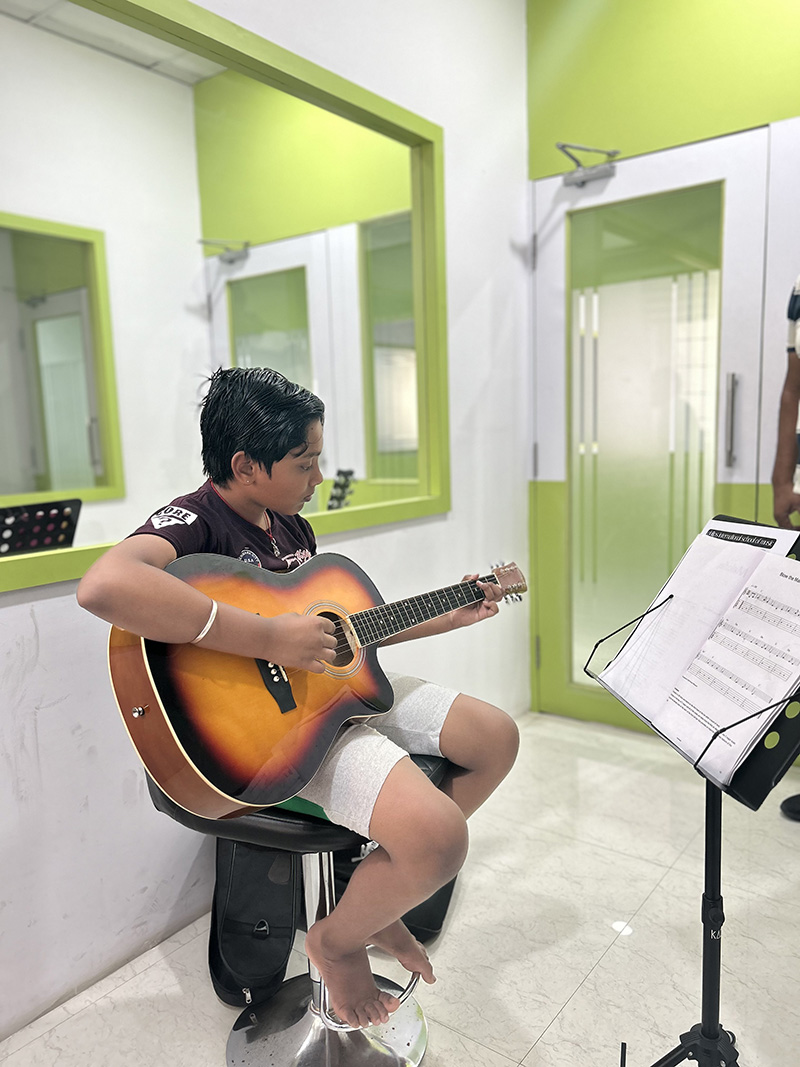 I'm excited to have reached grade 2 in guitar at Abians International School of Music! The instructors are amazing, making learning fun and rewarding. The supportive environment here has really helped me progress. Can't wait to keep strumming and learning!